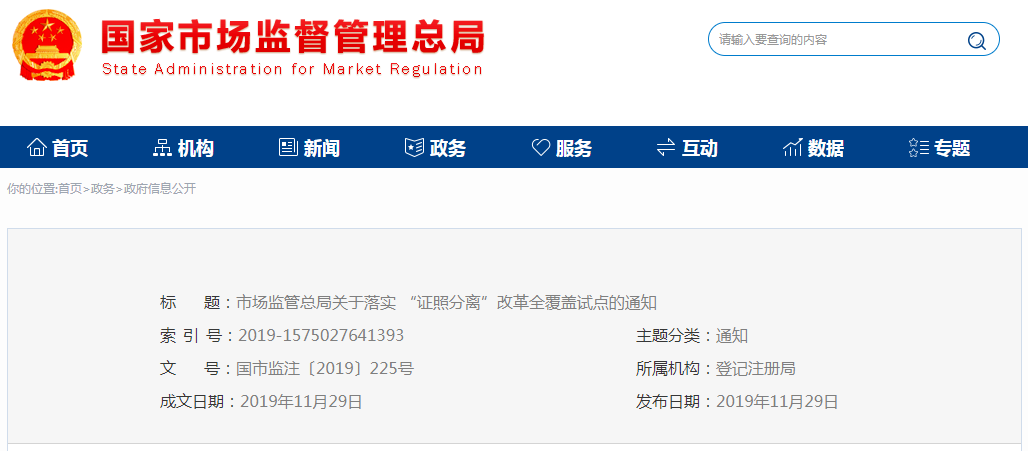 市場監管總局關于落實“證照分離”改革全覆蓋試點的通知